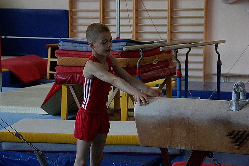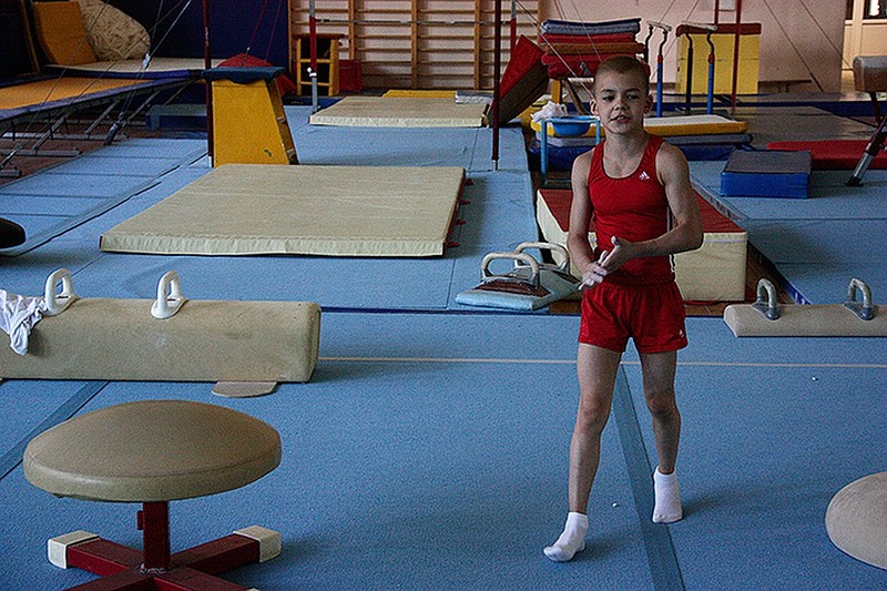 К гимнастике относится очень серьезно. Его кумиры - Николай Куксенков, Никита Нагорный и Денис Аблязин. 11-летний парнишка тренируется 6 дней в неделю по 4-5 часов и при этом даже дома не перестает думать о гимнастике. - Больше всего я, наверное, люблю брусья, - рассуждает Виталик Суходольский. - Но вообще я многоборец, и мне нравится все снаряды. На мой вопрос, чем занимается дома, Виталик ответил с заминкой. - Ну… В компьютер играю. А вообще думаю о прошедшей тренировке. Размышляю о допущенных ошибках и жду следующей тренировки.