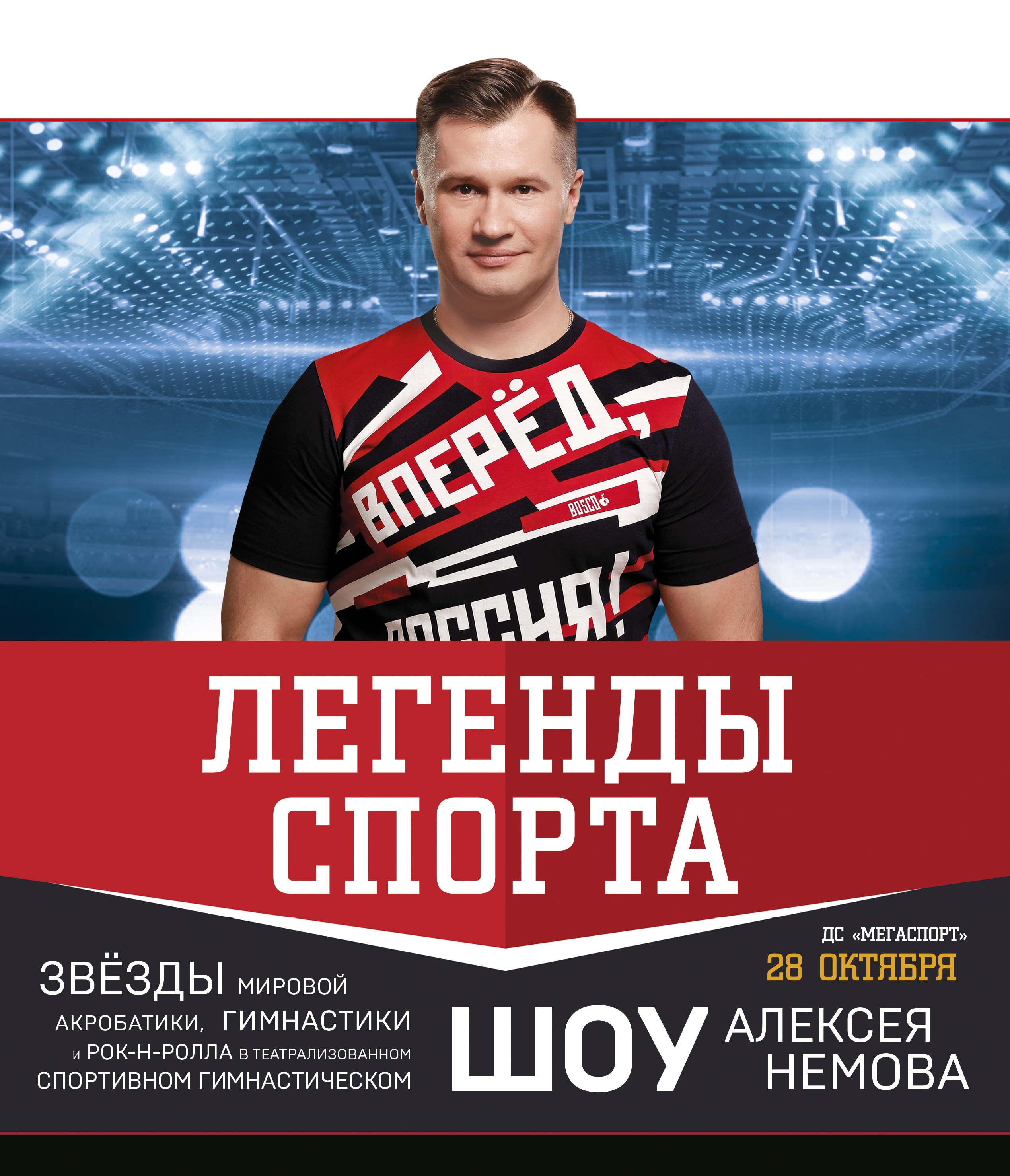 Новое шоу четырехкратного Олимпийского чемпиона Алексея Немова зрители смогут увидеть 28 октября 2017 года в Москве. Дворец спорта «Мегаспорт» будет открыт для 11 000 тысяч поклонников. На одной арене встречаются профессионалы – звезды гимнастики с действующими спортсменами.