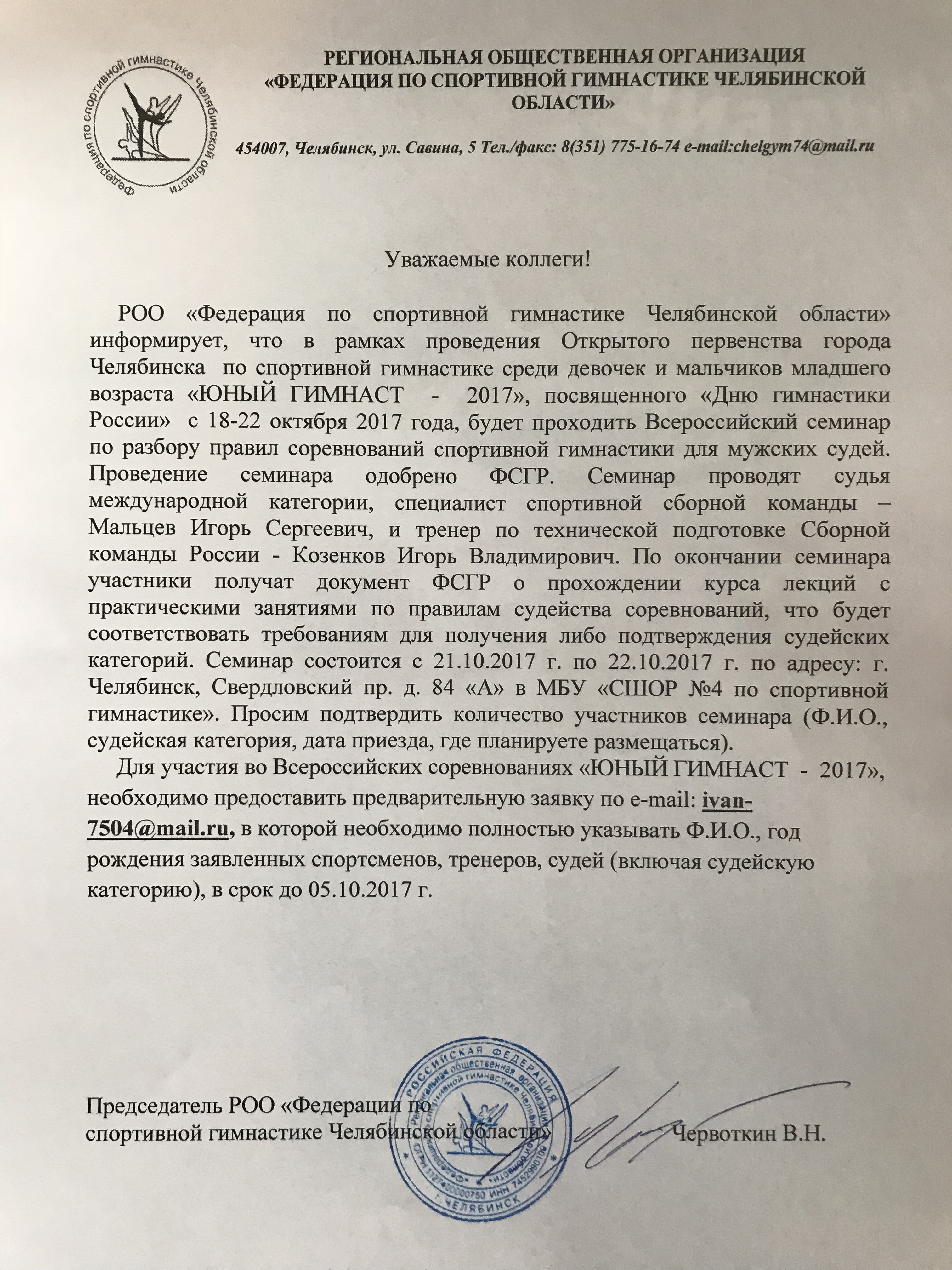 Всероссийский семинар по разбору правил соревнований по спортивной гимнастике для мужских судей